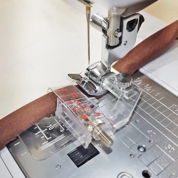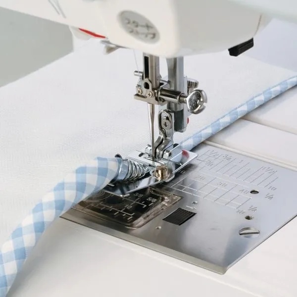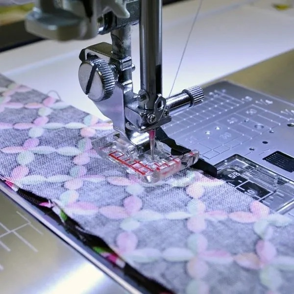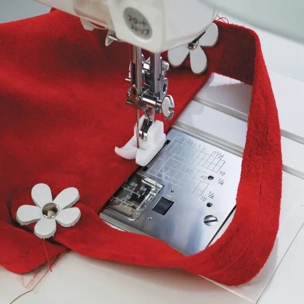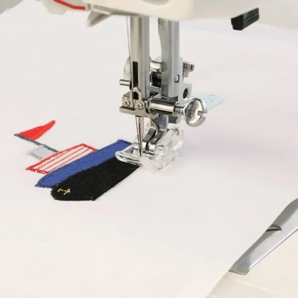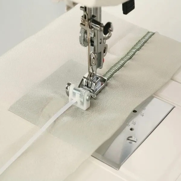 A popular foot with patch workers for that essential 1/4 inch seam. The guide on the foot enables you to sew a perfect 1/4 inch seam every time. The guide can also be used wherever a 1/4 inch seam is called for but the markings on the needle plate cannot be used, such as when completing a flat-felled seam.